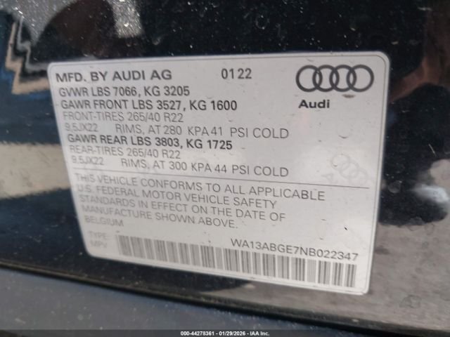 • VIN (Status):WA13ABGE7NB****** (OK)