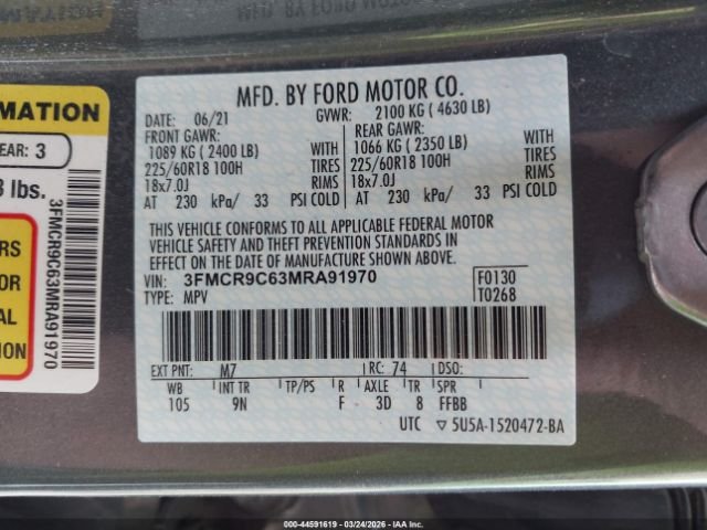 • VIN (Status):3FMCR9C63MR****** (OK)